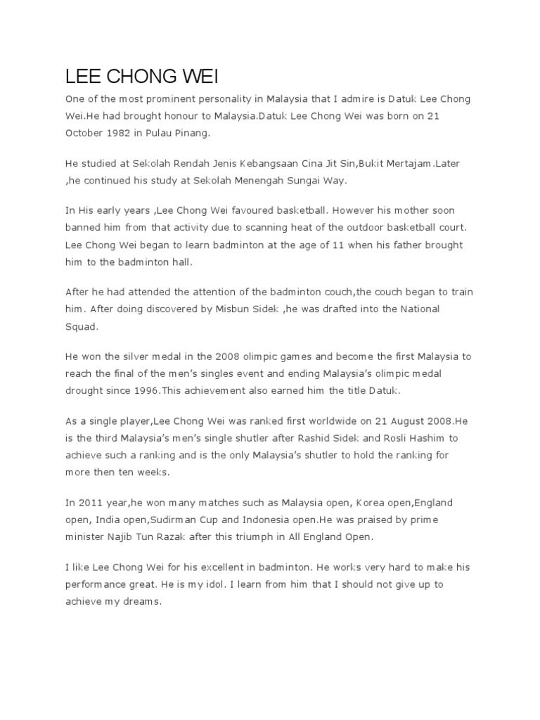 Tokoh Sukan Negara Lee Chong Wei Pdf 2 Pdf Tokoh Sukan Negara Gambar Rajah Datuk Lee Chong Wei Biografi Datuk Lee Chong Wei Nama Datuk Lee Chong Wei Course Hero